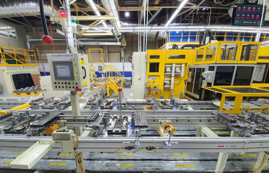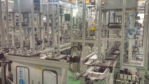 *Process where robots assemble additional parts as semi-finished products pass through an automated line