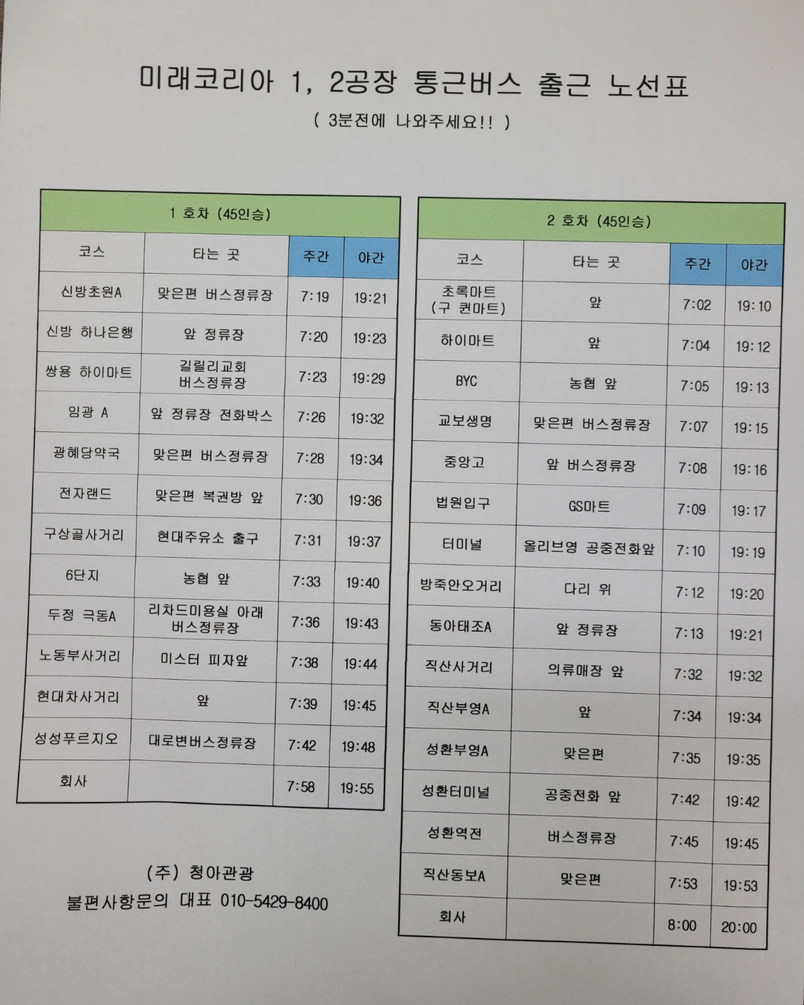 *통근차량운행(천안시내)